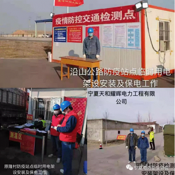 协会常务理事单位宁夏天和耀晖电力工程有限公司无偿为宁夏沿山公路、原隆村、园艺村疫情防控站点无偿架设临时用电。