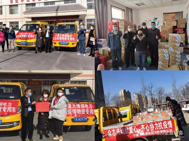 宁夏兆瑞电力工程有限公司(捐款10000元)、宁夏宏源达电力建设工程有限公司(捐款2000元)、宁夏天缘祺电力工程有限公司(捐赠物资32000余元)、宁夏科通电力工程有限公司(捐赠物资12580元)。