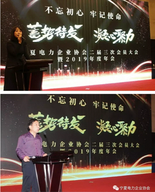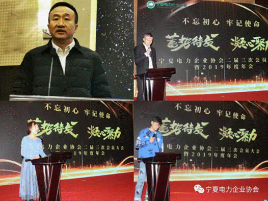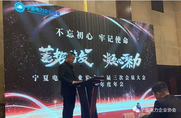 2020年1月3日,“不忘初心 牢记使命、蓄势待发 凝心聚力”——宁夏电力企业协会二届三次会员大会暨2019年度年会在银川成功召开。国家能源局西北监管局宁夏业务办康乐融主任、宁夏回族自治区民政厅社会组织管理局李富昌处长、自治区发改委能源处王海洋、宁夏电力企业协会会长刘继超、名誉会长吕希斌、副会长虎彦明、李剑锋、苏旭东、吴群、陈振华、叶涛、秘书长马全贵及会员单位代表共计 98人参加会议。