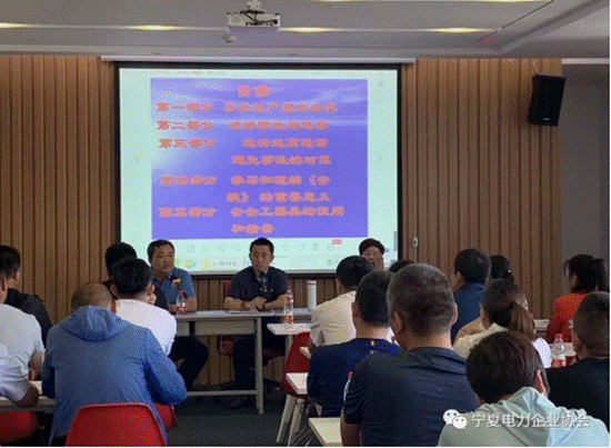 培训班由协会秘书长马全贵主持,并简要介绍协会基本情况和电力行业信用体系建设办公室宁夏评价中心工作进展。会长刘继超作动员讲话,希望各会员企业要从思想上重视安全,从行动上保障安全,从源头上有效防范安全事故的发生。