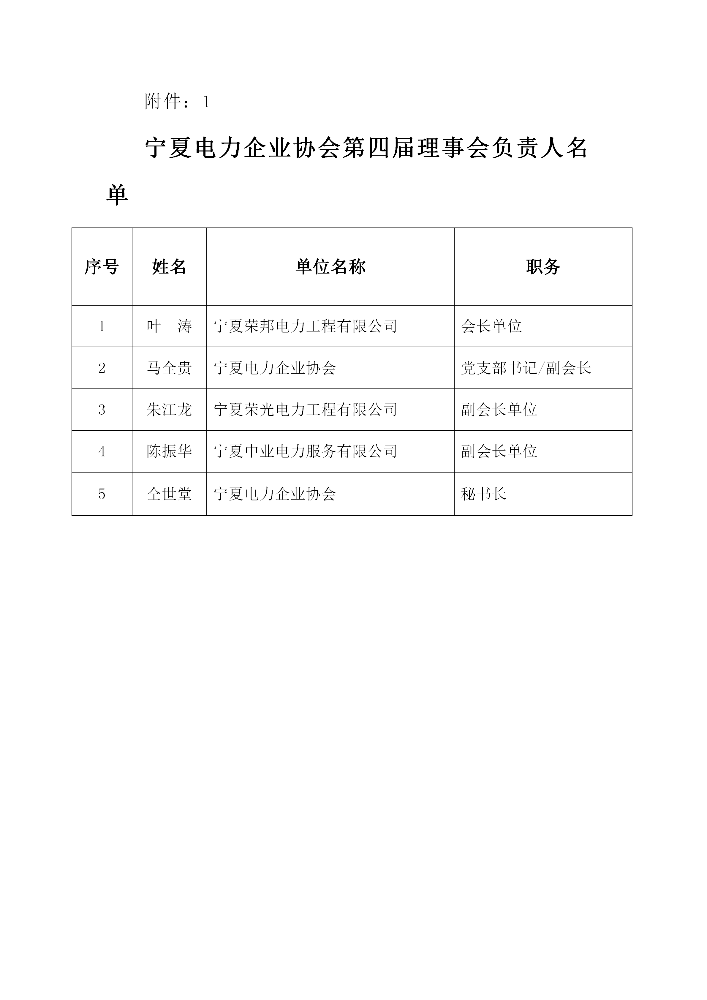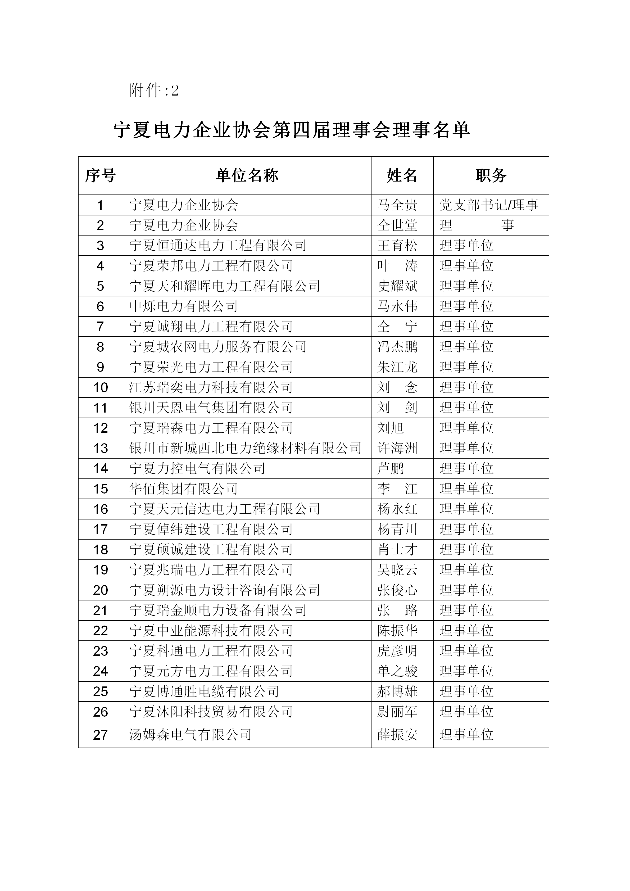 >宁夏电力企业协会第四届理事会负责人、理事、监事人员